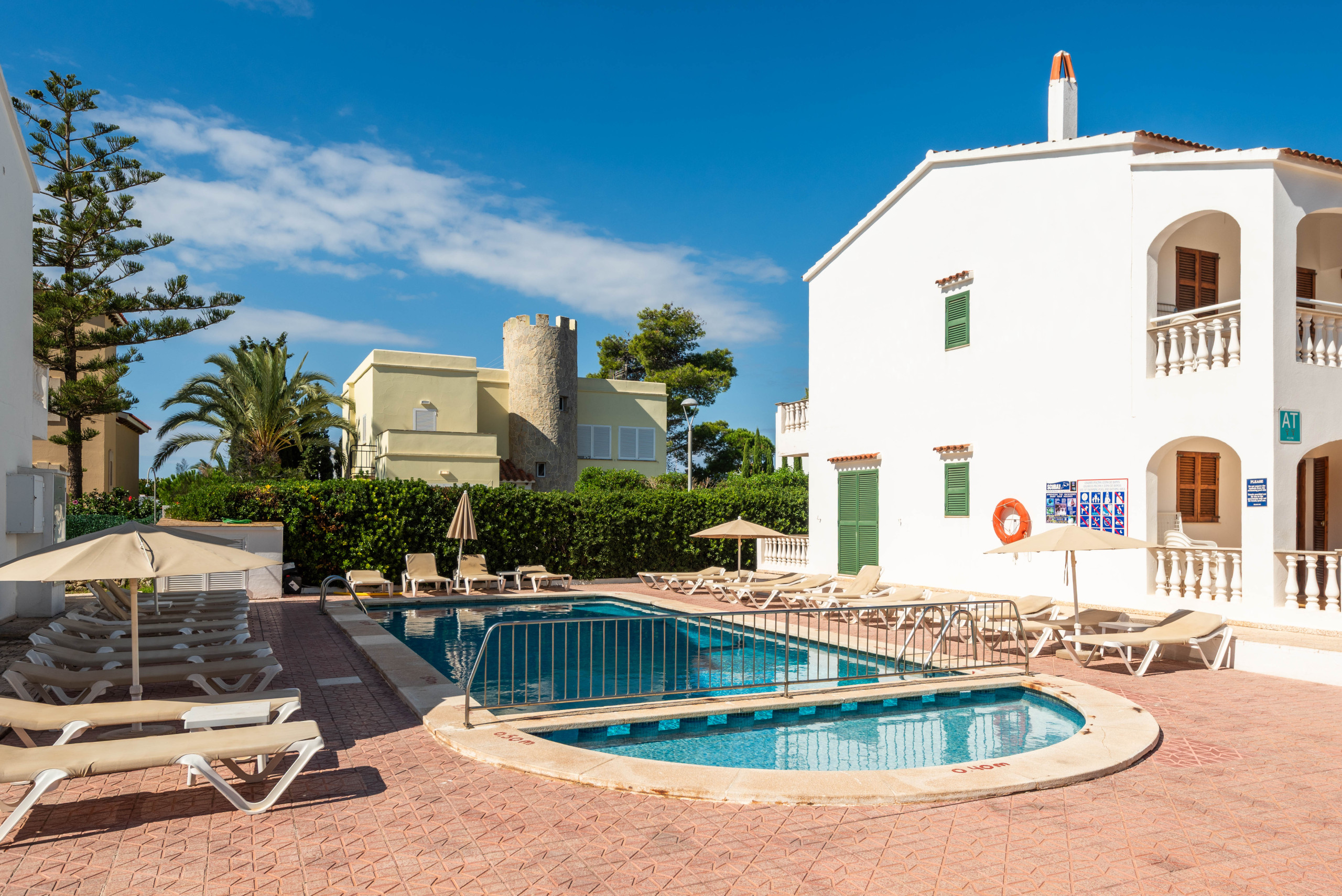 El complejo ofrece piscina comunitaria con zona poco profunda para niños, perfecta para relajarse al sol.
