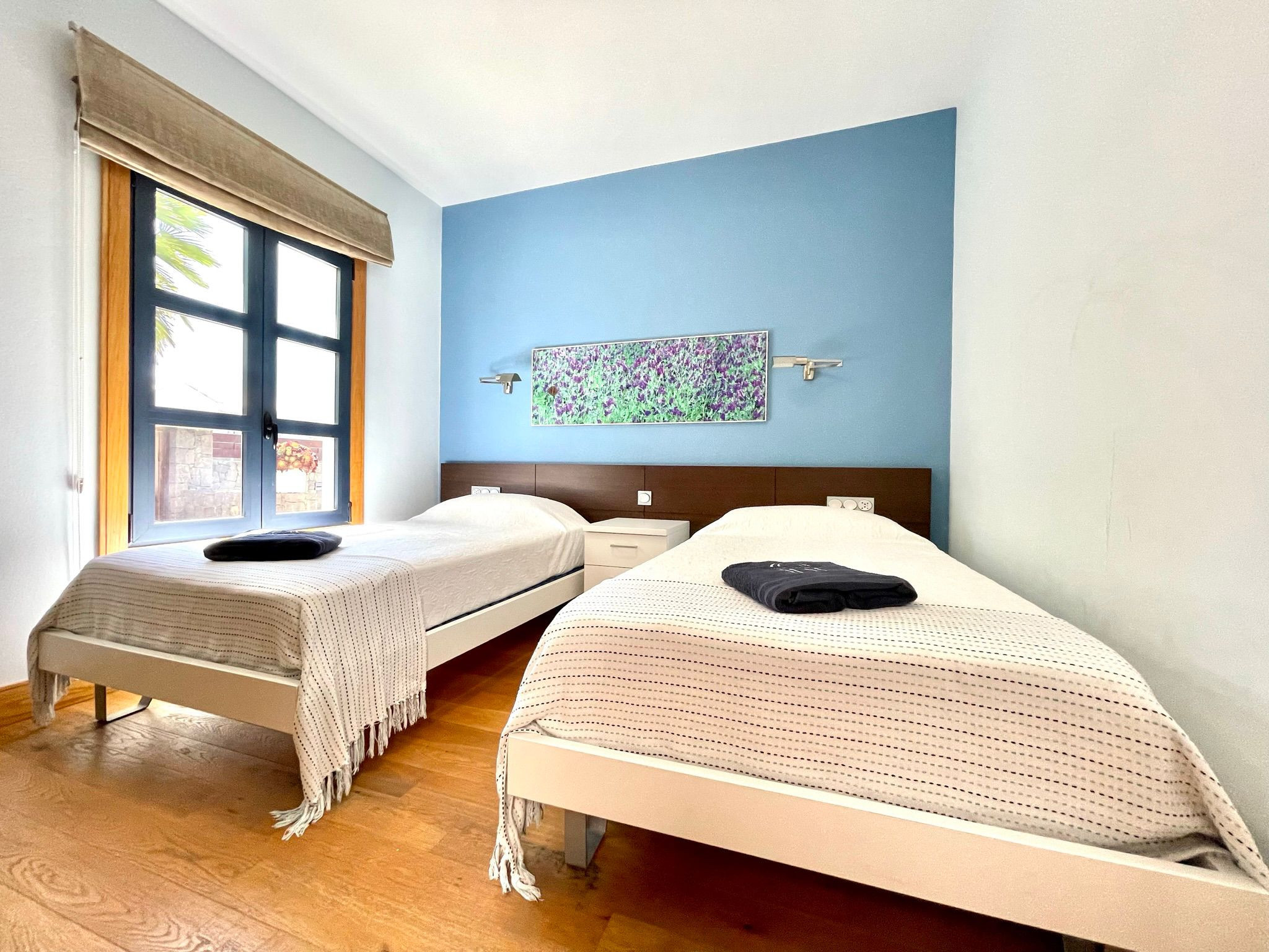 En la costa sur de Lanzarote, a pocos pasos de la playa de Playa Blanca, Your Island Villa Mamma Mia sorprende con un diseño moderno y rompedor que incorpora sutiles detalles rústicos. Esta propiedad diseñada para alojar hasta 6 personas cuenta con salón diáfano con pared de piedra vista, comedor con vigas de madera y vistas a la piscina, cocina bien equipada con electrodomésticos de alta calidad, 3 dormitorios, además como 3 baños. Los servicios adicionales incluyen Wi-Fi, aire acondicionado, televisión vía satélite y por cable, una cuna y una trona. En el exterior encontrarás una fascinante terraza con tumbonas, un porche con zona de estar y una gran mesa de comedor, además de una majestuosa piscina de 40 m², que se puede calentar. Además, tendrás a tu disposición una barbacoa que hará las delicias de tus comidas al aire libre. Y por si fuera poco, todo este disfrute se verá potenciado con unas incomparables vistas a las montañas de los alrededores, y con acceso ilimitado a la sauna, jacuzzi y ducha exterior con los que cuenta la propiedad. Te encontrarás alojado en una ubicación céntrica pero tranquila, a sólo 1,2 kilómetros, a 15 minutos a pie, de numerosos supermercados, restaurantes y tiendas. Encontrarás la playa a sólo 900 metros, 10 minutos caminando, un auténtico refugio para escapar de cualquier atisbo de rutina con el Océano Atlántico como telón de fondo.