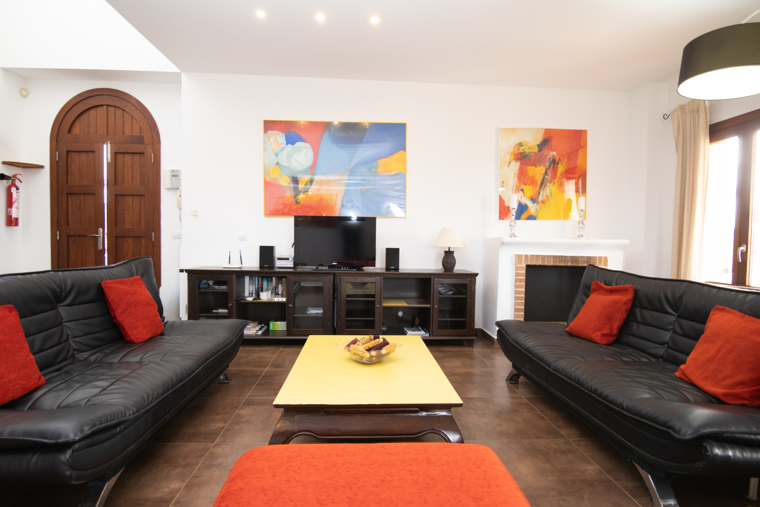 El interior de la villa está completamente equipado con aire acondicionado y bomba de calor para garantizar el confort en cualquier época del año. Dispone de tres dormitorios con capacidad para 6 personas, todos con baño en suite: dos dormitorios se encuentran en la planta baja y el tercer dormitorio en la primera planta. La distribución de camas incluye una cama doble y cuatro camas individuales, ofreciendo comodidad y privacidad para todos los huéspedes..