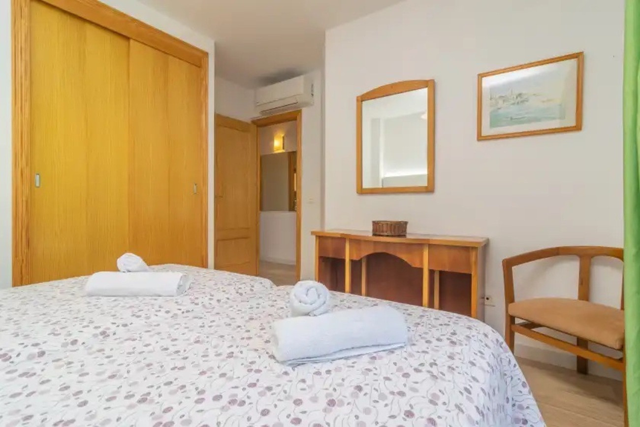 Die Wohnung verfügt über zwei Doppelschlafzimmer, ausgestattet mit Klimaanlage, um maximalen Komfort das ganze Jahr über zu gewährleisten. Sie befindet sich im ersten Stock (ohne Aufzug) und verfügt über einen angenehmen Balkon. Außerdem gibt es ein komplettes Badezimmer mit Badewanne und Dusche sowie ein gemütliches Wohnzimmer mit Fernseher, ideal zum Ausruhen nach einem Strandtag.