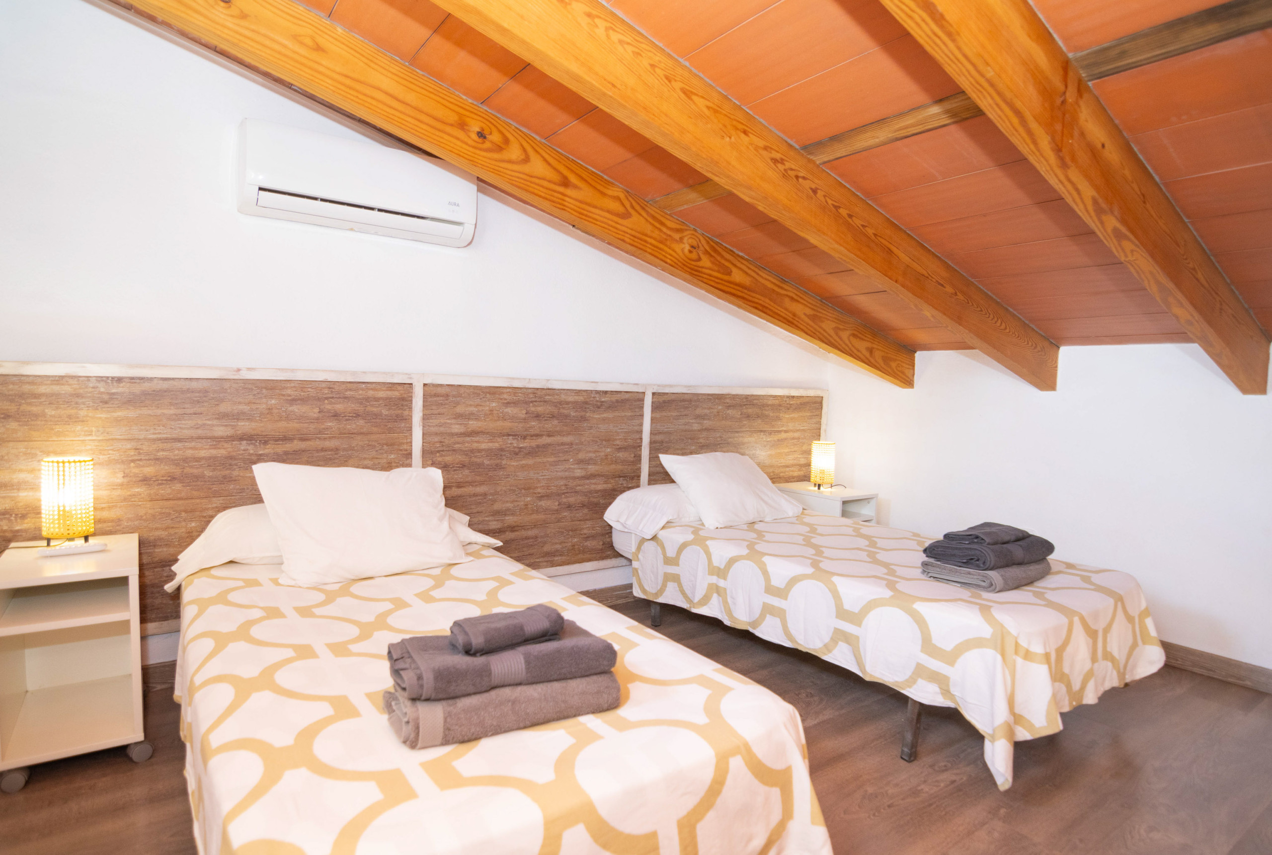 Zuerst betritt man den geschmackvoll eingerichteten Salon. Es gibt bequeme Sofas, einen Fernseher und Internetanschluss. Neben dem Salon befindet sich ein schönes Schlafzimmer mit einem Doppelbett. Außerdem gibt es einen Essbereich, in den die Küche integriert ist. Von hier aus führt eine schöne Wendeltreppe zu einem weiteren Schlafzimmer, das mit zwei Einzelbetten ausgestattet ist. Von den beiden in dem Haus installierten Badezimmern hat eines eine Dusche und das andere eine Badewanne.