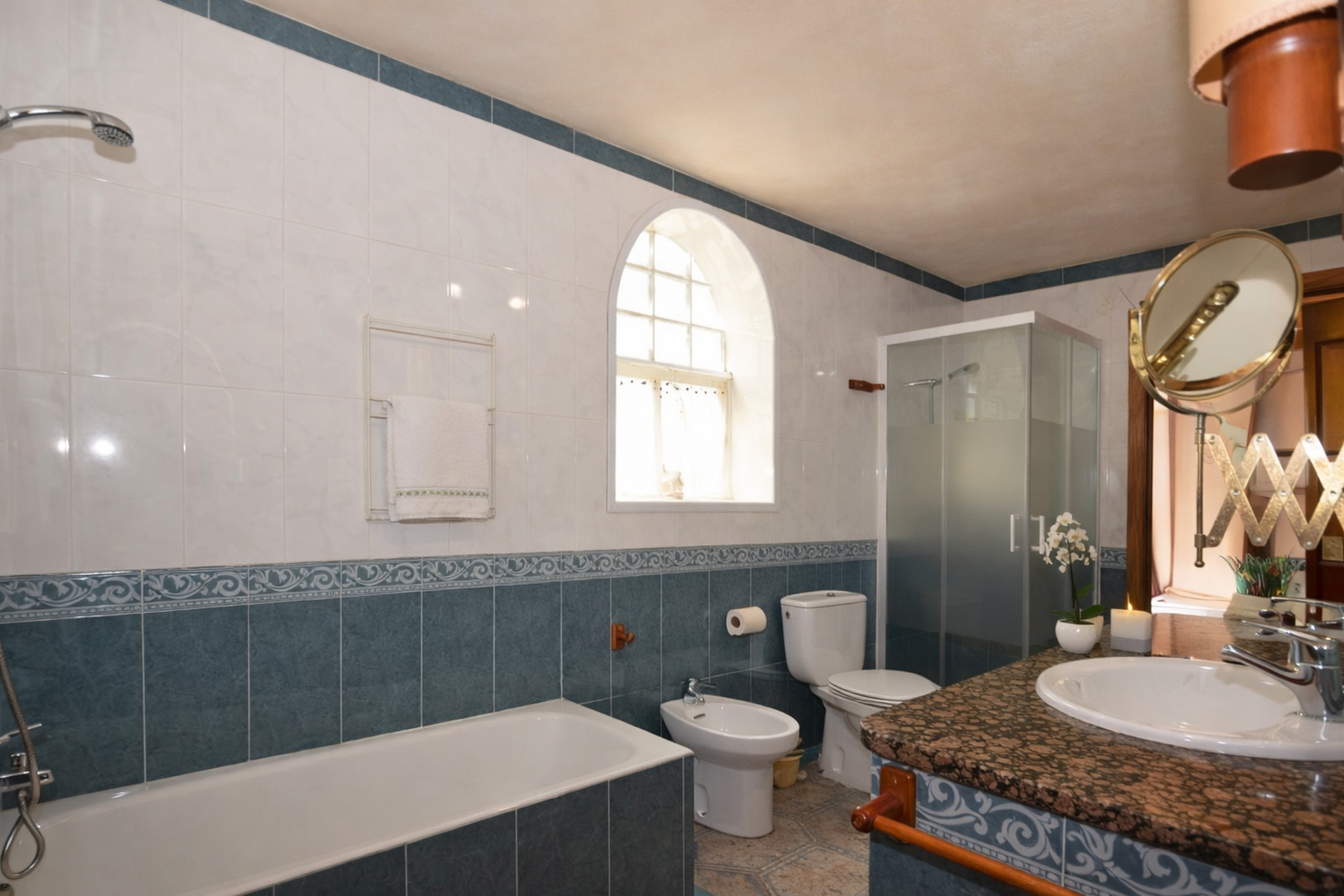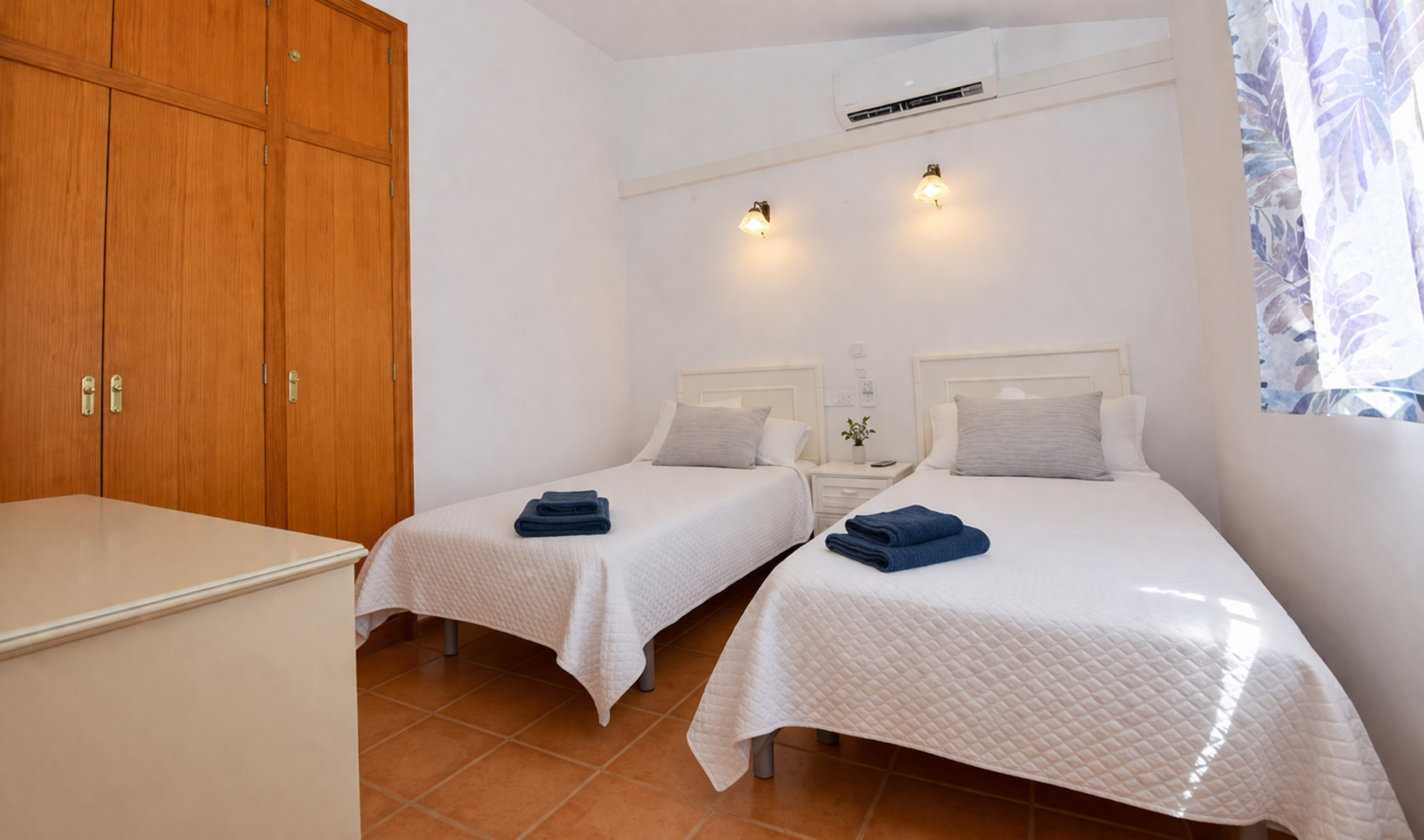 Fünf Schlafzimmer: 2 mit Doppelbett, drei weitere mit 2 Einzelbetten und drei Badezimmer: zwei mit Badewanne und eines mit Dusche, vervollständigen die Ruhezonen.