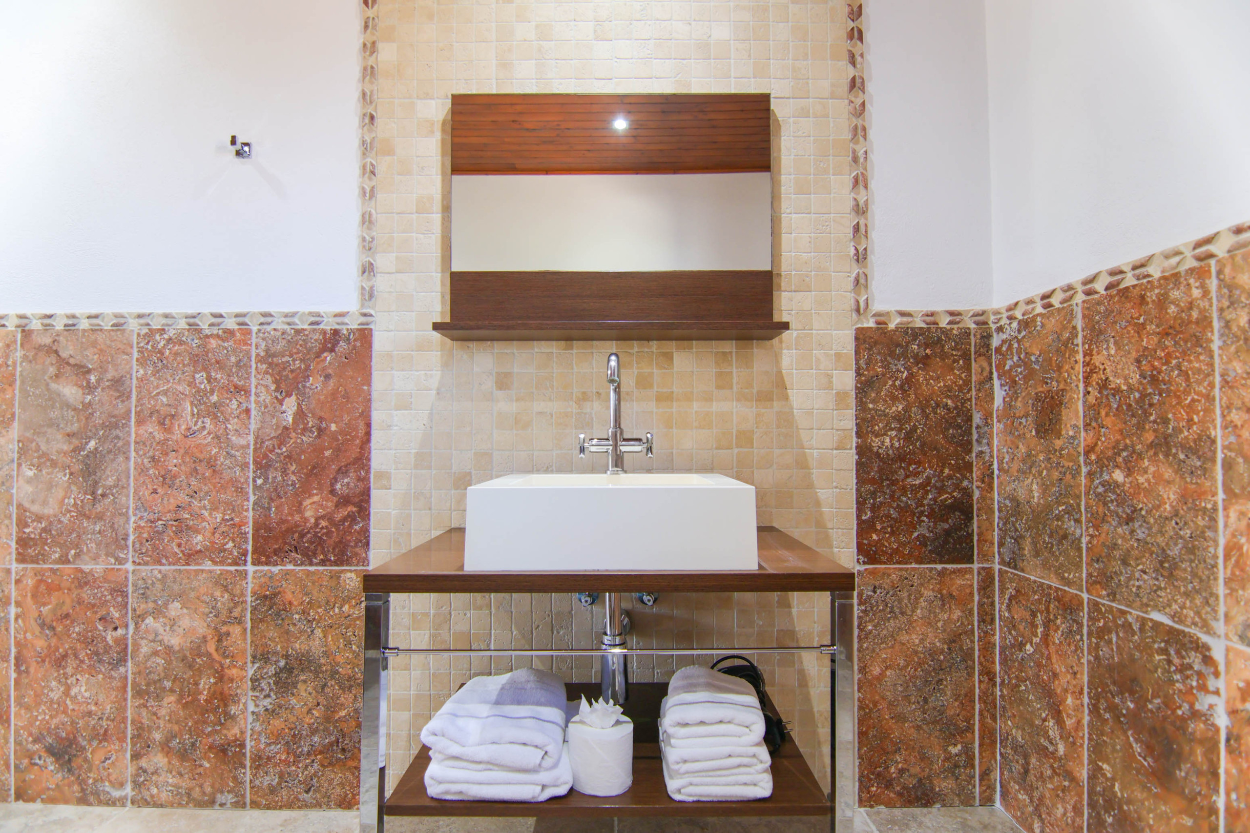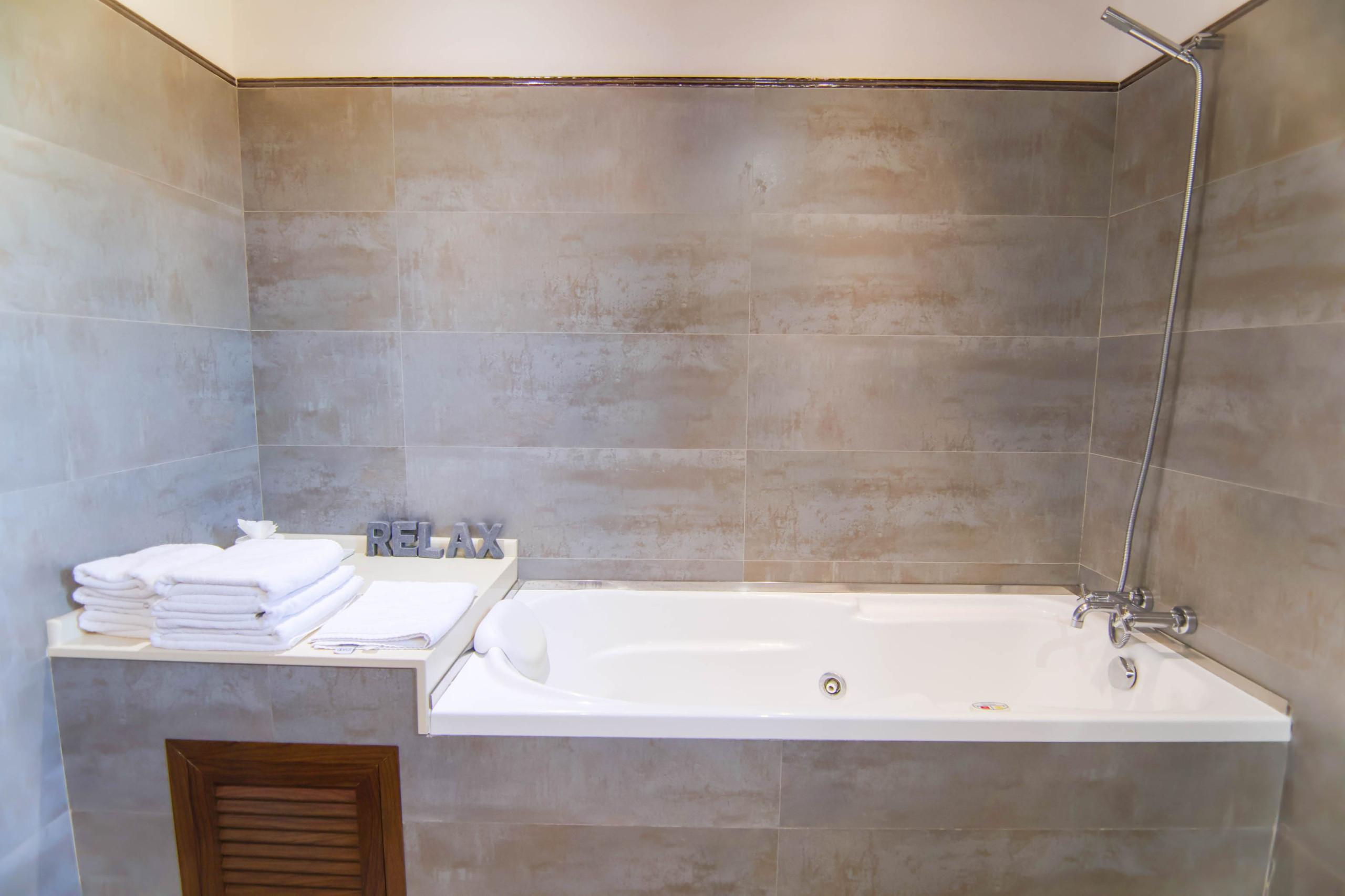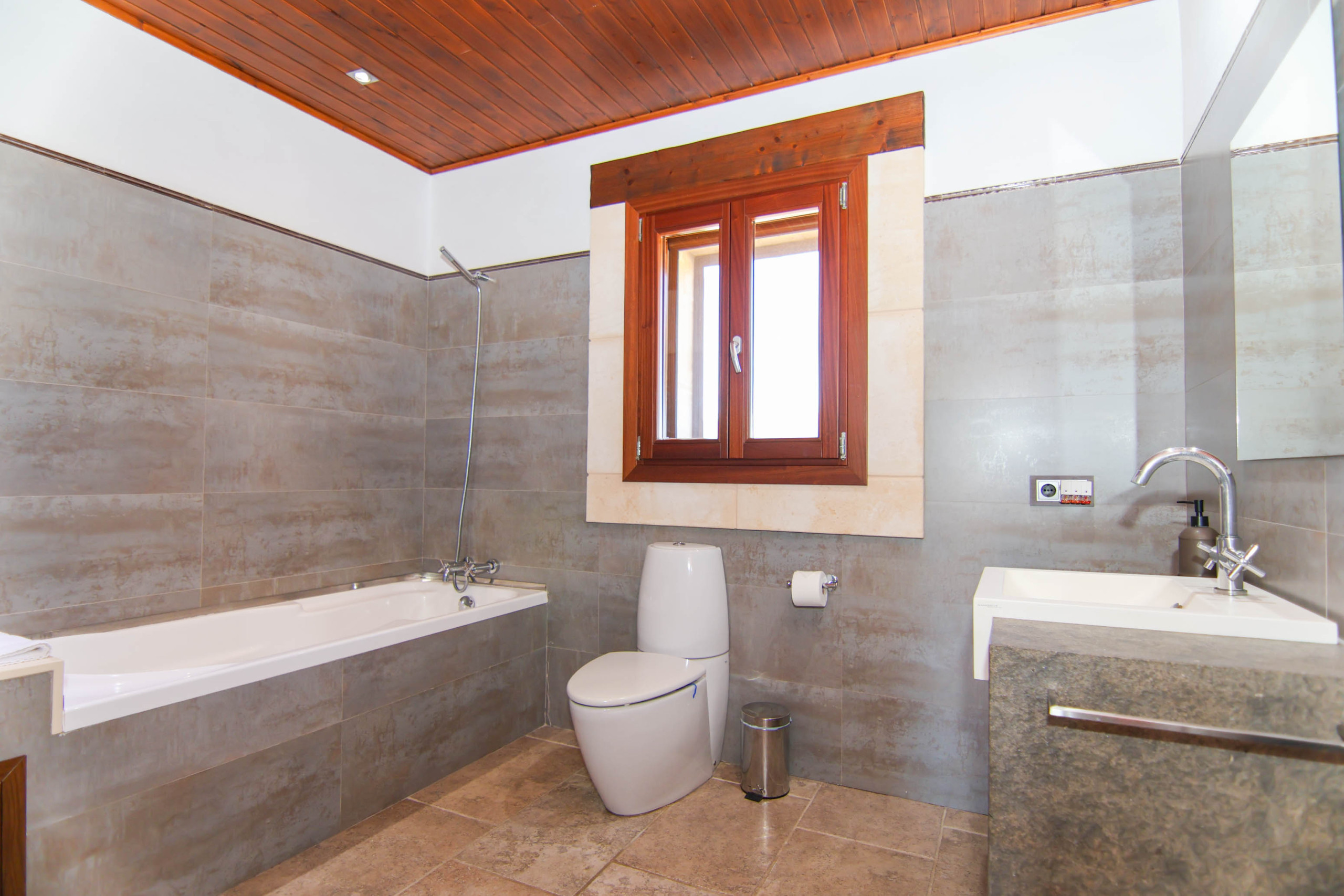 The pool is quite deep all throughout-just a note, not a problem for us though. The only other negative was there being only one shower inside the property which is off the main living area. There is also a very nice modern shower/bathroom next to the pool outside , but it would be better to have showers in the two bathrooms upstairs - there are handheld showers in each bathroom upstairs but no good for an actual shower - ok for rinsing children though. In the en-suite this would easily solved by a glass screen above the bath. |