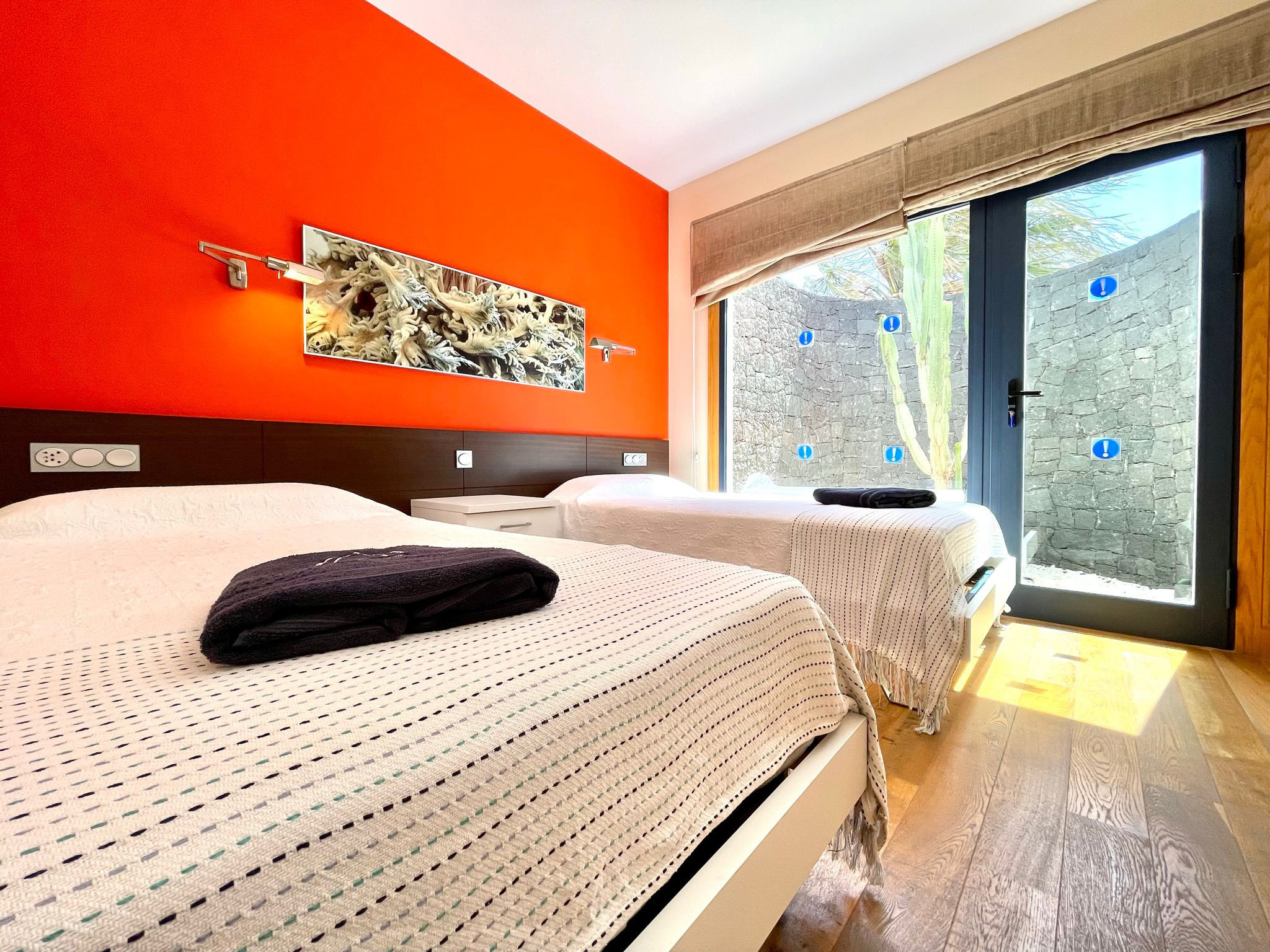 An der Südküste von Lanzarote, nur wenige Schritte vom Strand Playa Blanca entfernt, überrascht die Your Island Villa Mamma Mia mit einem modernen und bahnbrechenden Design, das subtile rustikale Details beinhaltet. Dieses für bis zu 6 Personen konzipierte Anwesen verfügt über ein offenes Wohnzimmer mit freiliegender Steinmauer, ein Esszimmer mit Holzbalken und Blick auf den Pool, eine gut ausgestattete Küche mit hochwertigen Geräten sowie 3 Schlafzimmer sowie 3 Badezimmer. Zu den weiteren Annehmlichkeiten gehören WLAN, Klimaanlage, Satelliten- und Kabelfernsehen, ein Kinderbett und ein Hochstuhl. Draußen finden Sie eine faszinierende Terrasse mit Sonnenliegen, eine Veranda mit Sitzecke und großem Esstisch sowie einen majestätischen 40 m² großen Swimmingpool, der beheizt werden kann. zusätzliche Kosten). Darüber hinaus steht Ihnen ein Grill zur Verfügung, der Ihre Mahlzeiten im Freien angenehm macht. Und als ob das noch nicht genug wäre, wird dieser Genuss durch einen unvergleichlichen Blick auf die umliegenden Berge und durch den uneingeschränkten Zugang zur Sauna, zum Whirlpool und zur Außendusche des Anwesens noch verstärkt. Sie wohnen zentral und dennoch ruhig, nur 1,2 Kilometer bzw. 15 Gehminuten von zahlreichen Supermärkten, Restaurants und Geschäften entfernt. Sie finden den Strand nur 900 Meter entfernt, 10 Minuten zu Fuß, ein wahrer Zufluchtsort, um vor der Kulisse des Atlantischen Ozeans jeglichem Alltagsstress zu entfliehen.