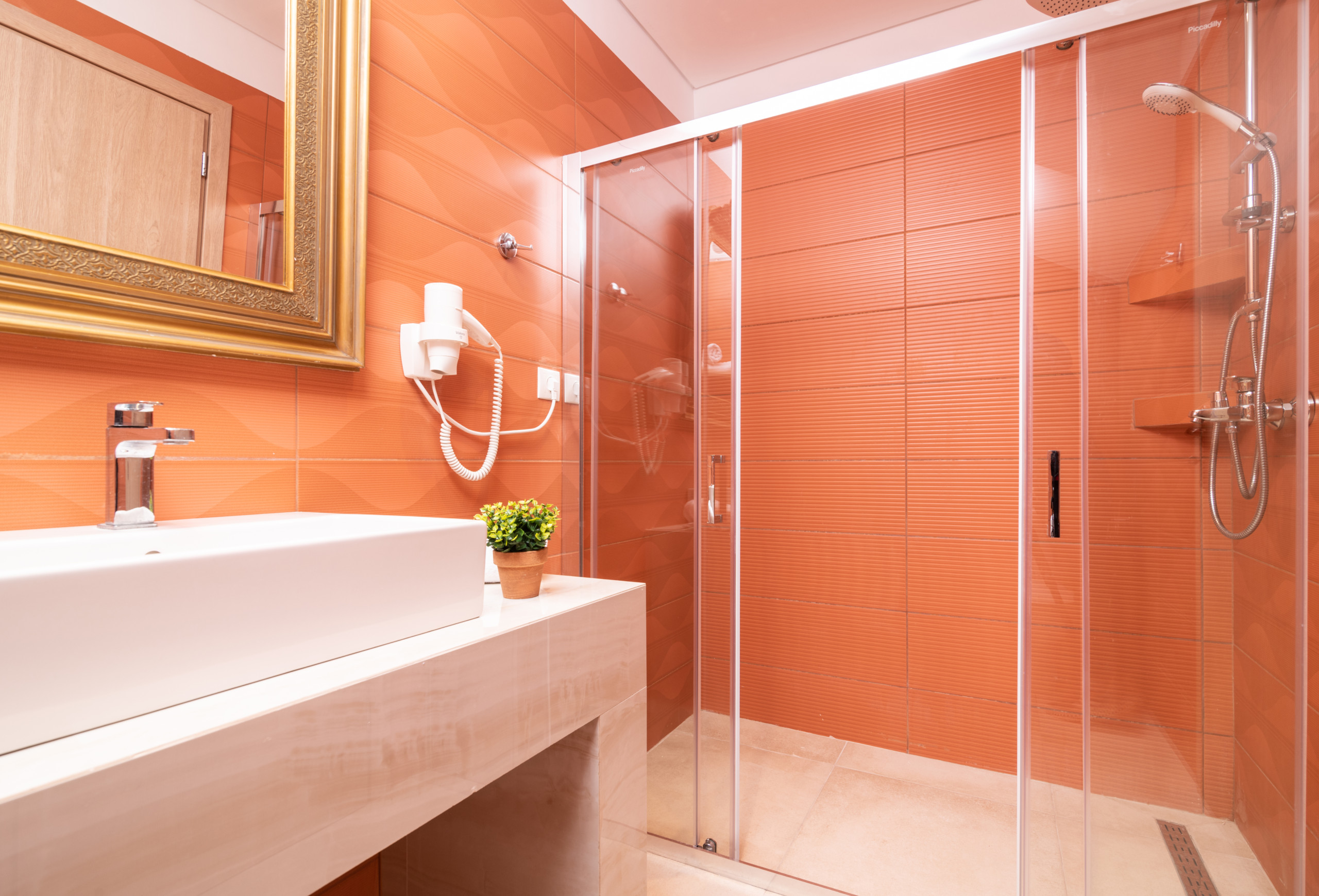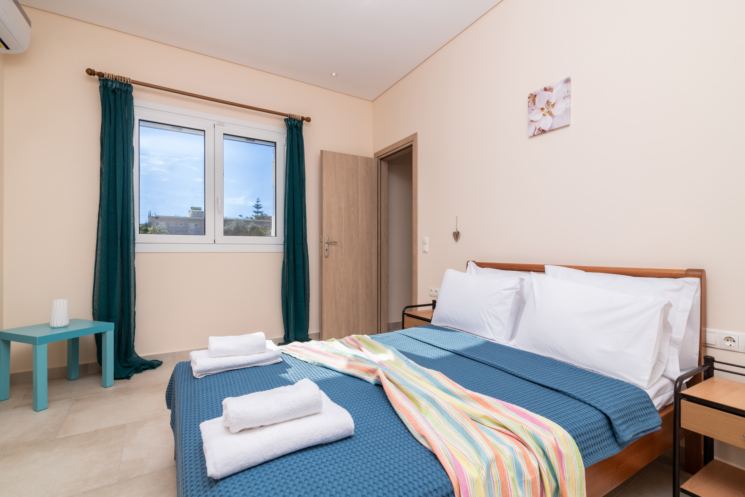 • Seniorschlafzimmer – 20 m², 1 Doppelbett, Klimaanlage, eigenes Badezimmer mit Dusche, Kleiderschrank, Bettwäsche und Handtücher, Poolhandtücher.