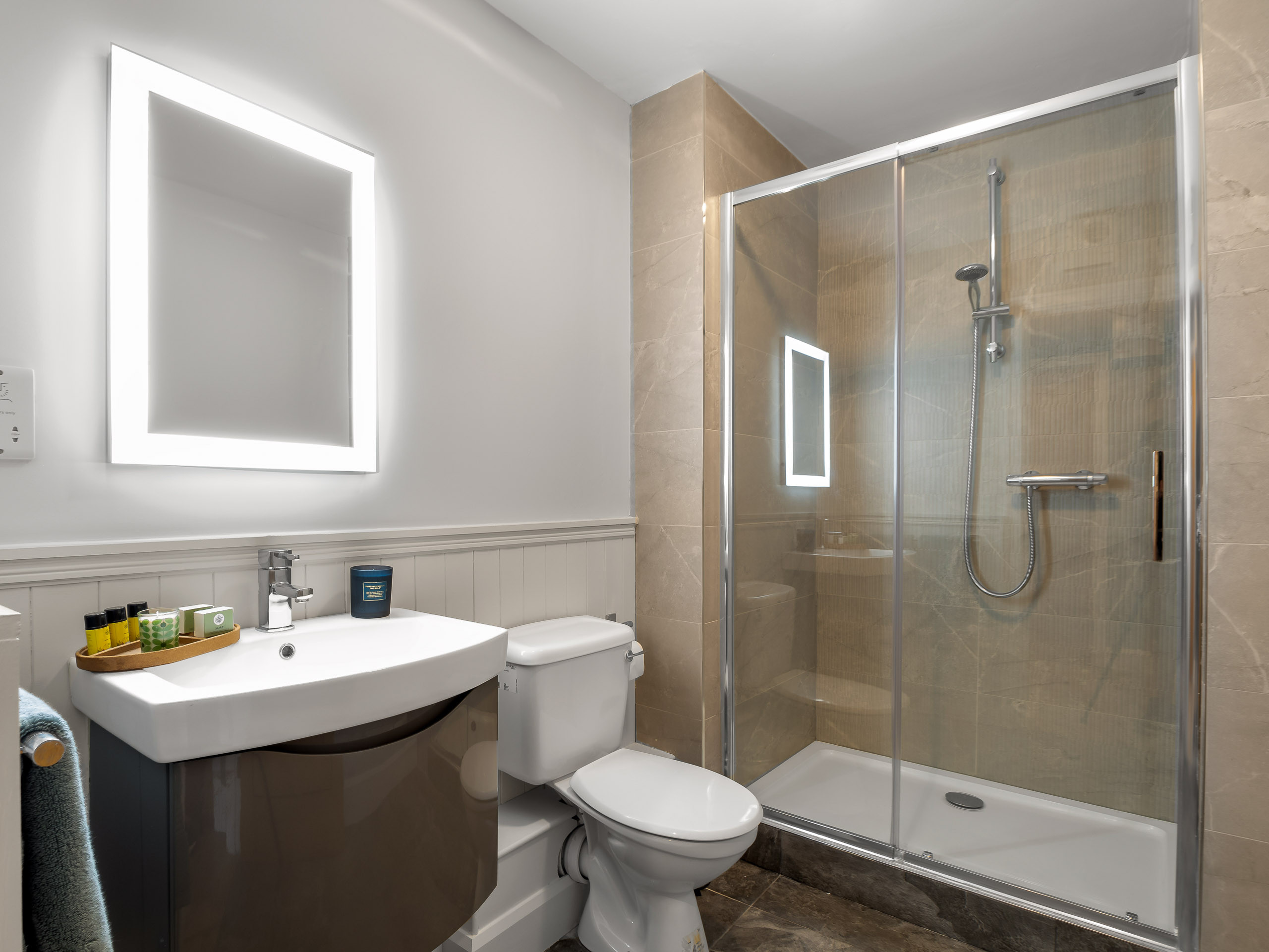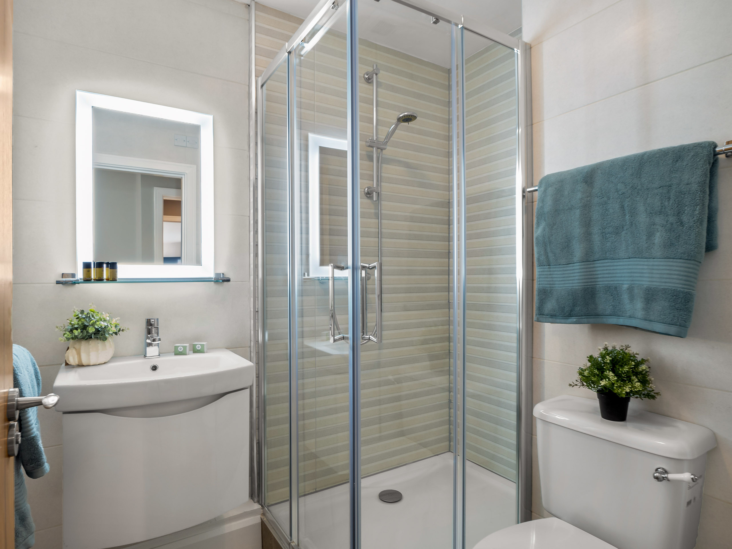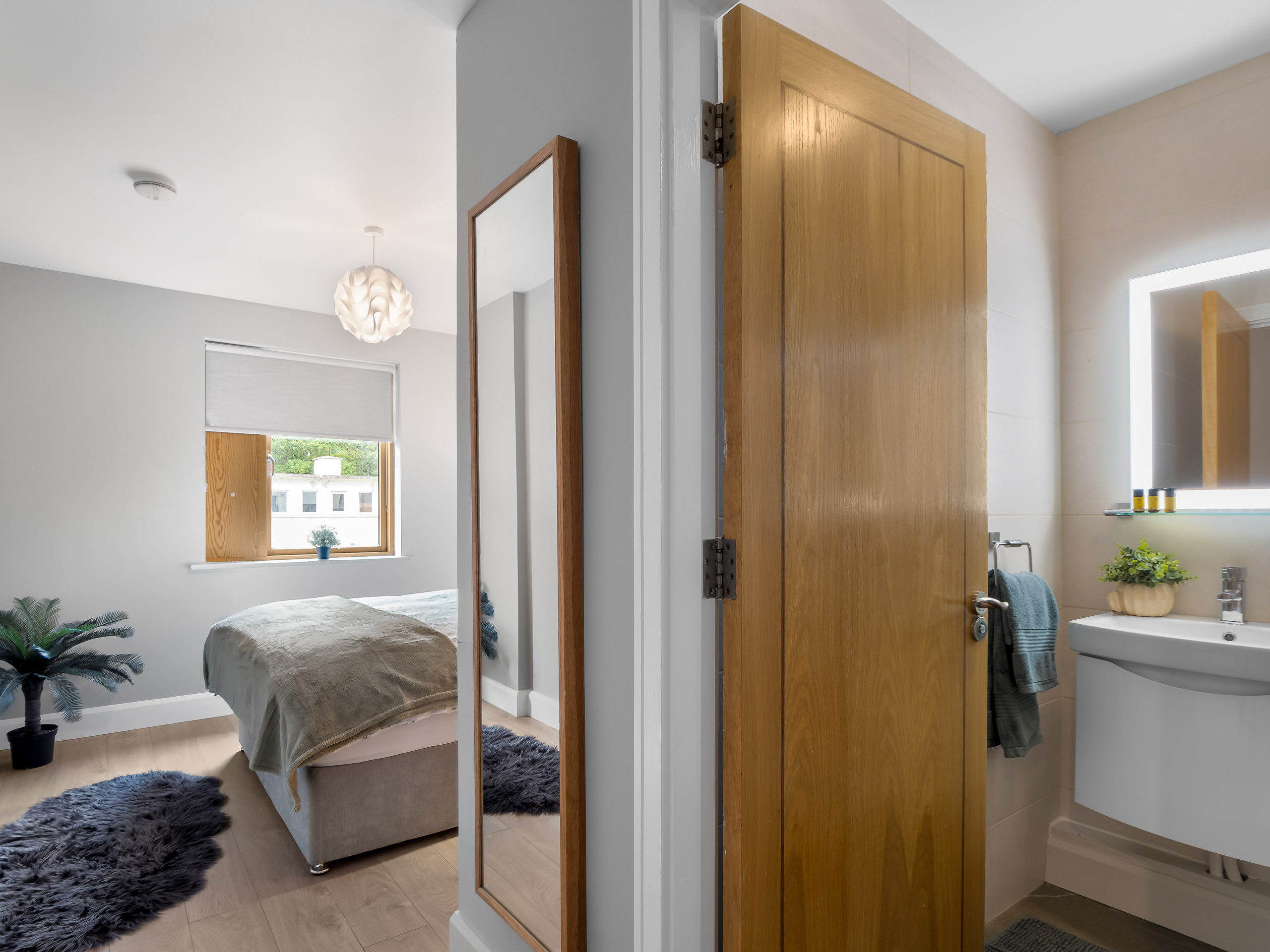 Once you enter this large open-plan sitting room/kitchen dining area you are immediately struck by the large windows with a birds' eye view of Clifden Town Centre. The apartment benefits from a very spacious and airy reception room with bright yet warm tones and modern features. Newly fitted open-plan kitchen comes equipped with an electric oven, electric hob, fridge freezer, washing machine and microwave. Nespresso coffee machine, kettle & toaster. There is a small balcony with a table & 2 chairs to enjoy your morning coffee.