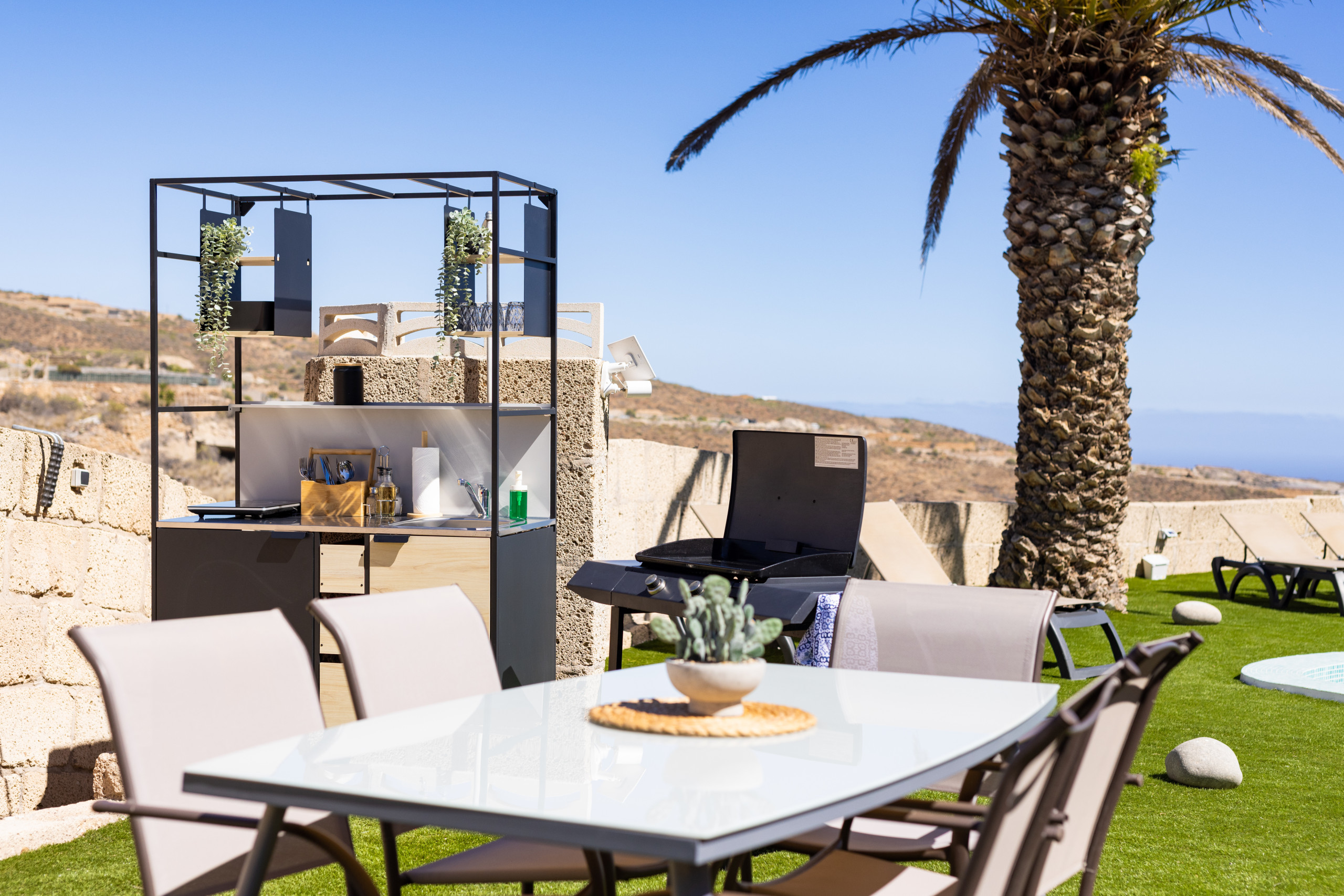 Outdoor kitchen and shared dining area