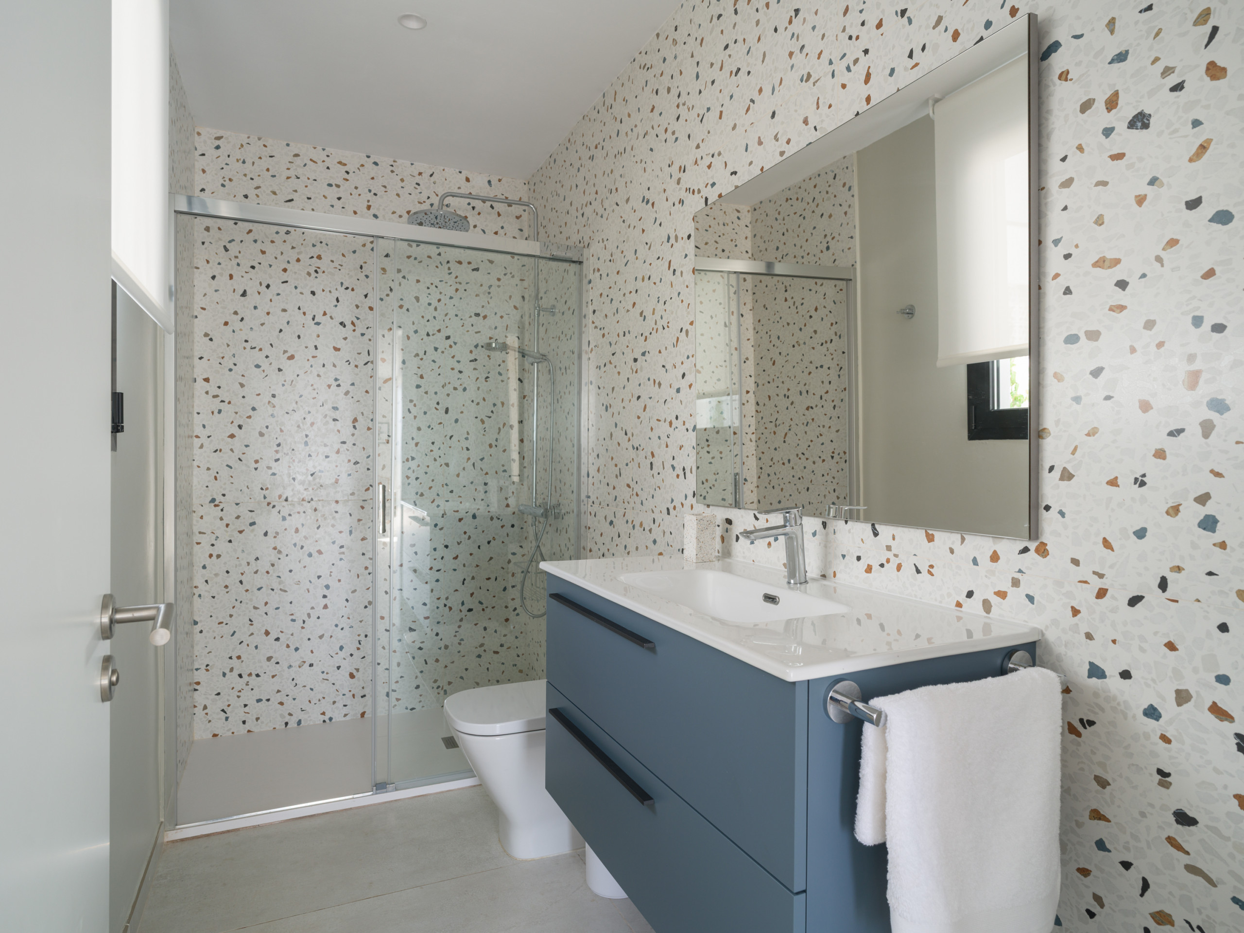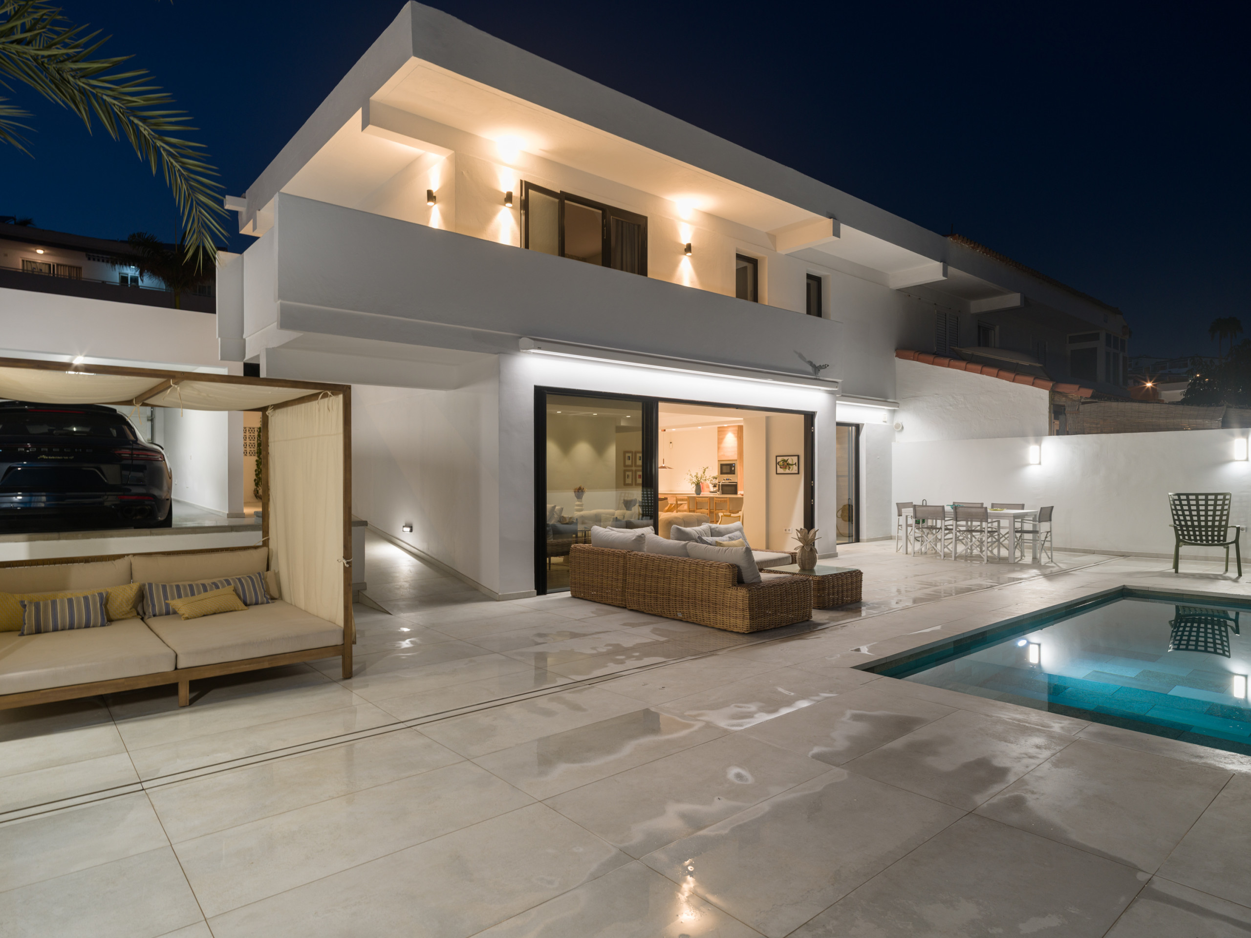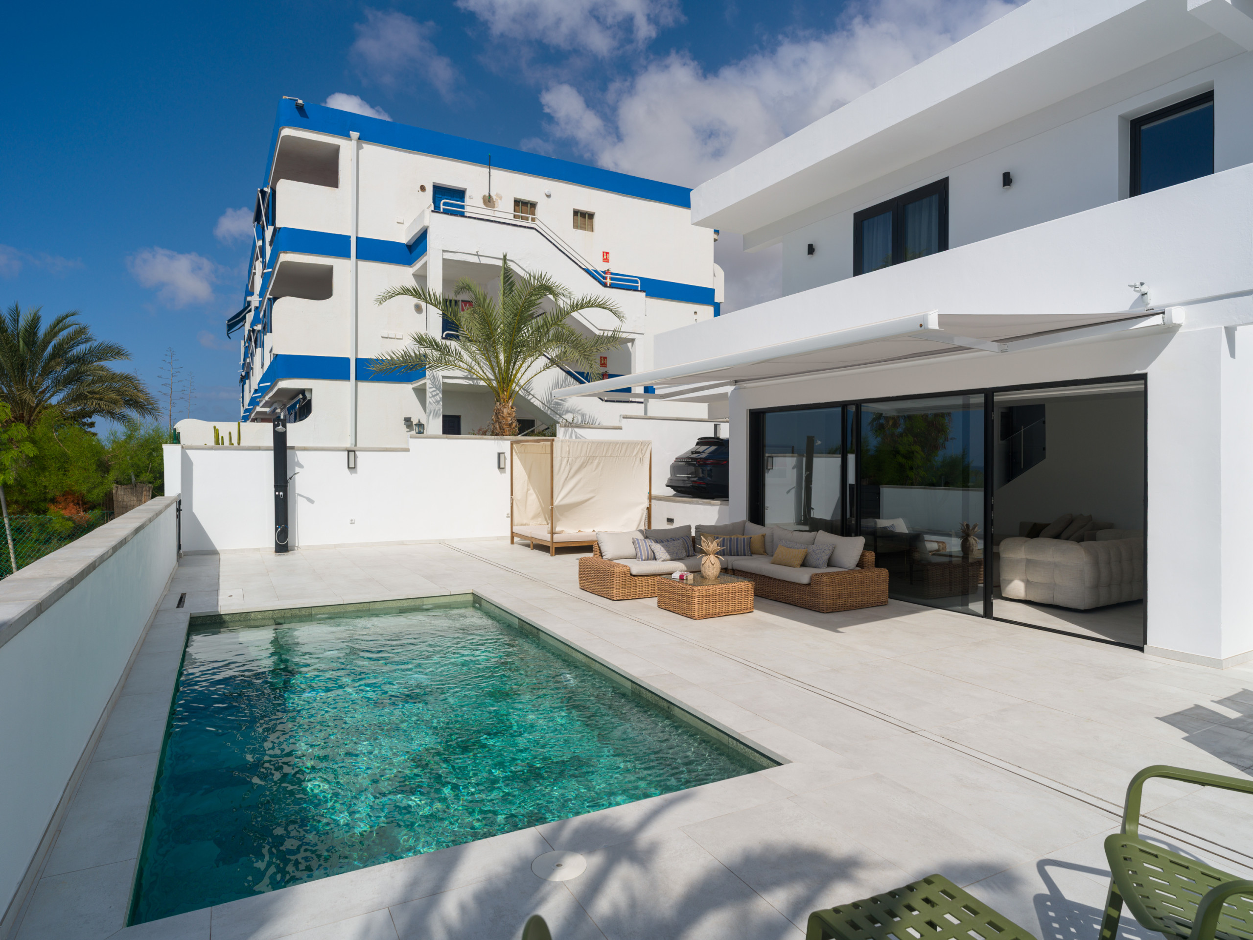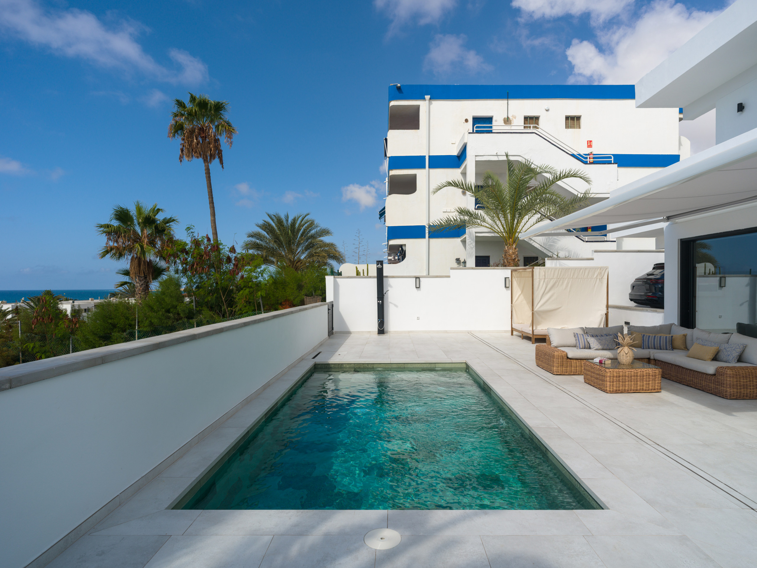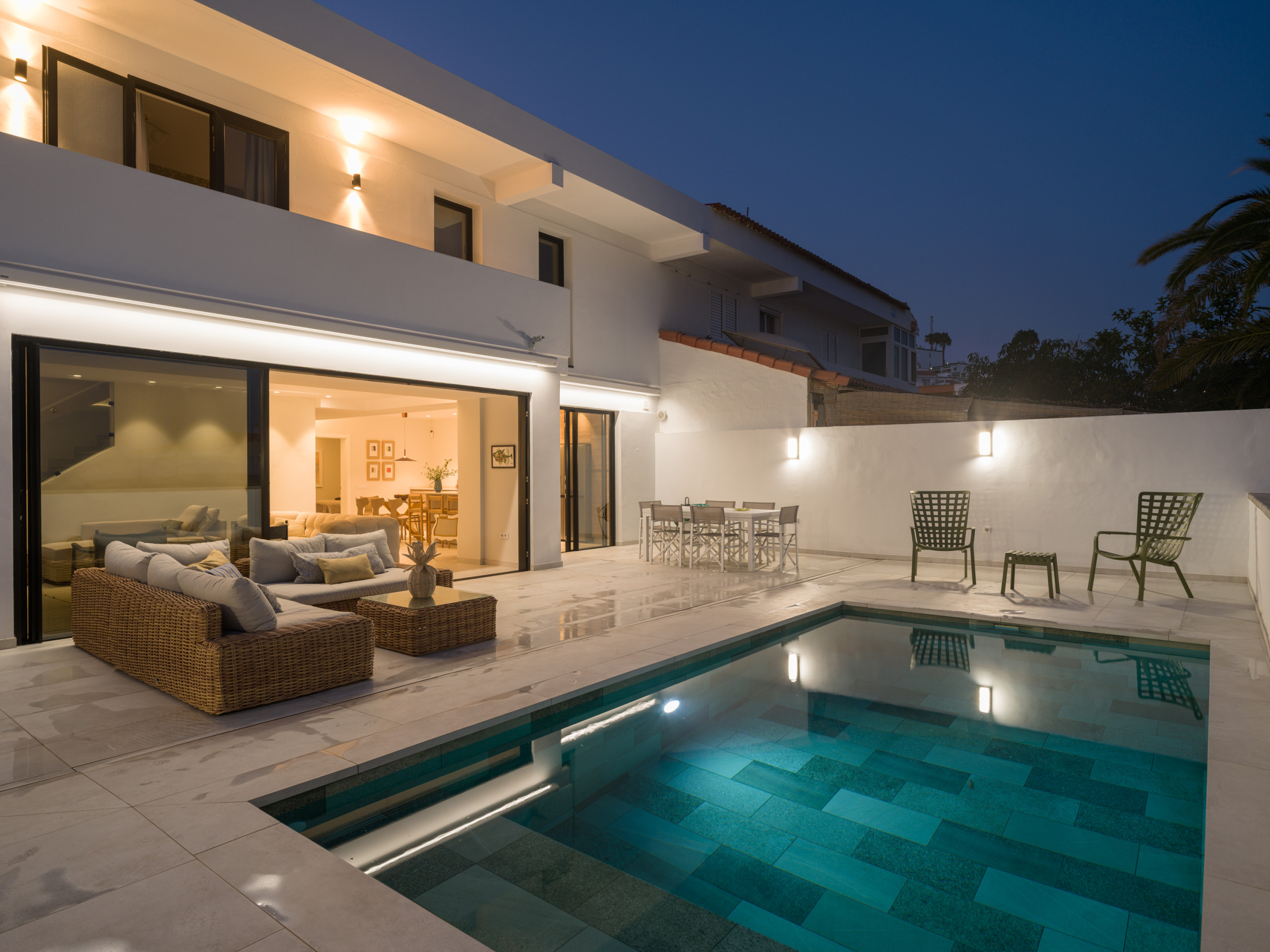 Elle dispose de mobilier de jardin, clôture, 100 m² de terrasse, lave-linge, sèche-linge, barbecue, fer à repasser, coffre-fort, accès internet (wifi), sèche-cheveux, balcon, climatisation, piscine privée, piscine chauffée privée, garage même bâtiment, TV, tv satellite.