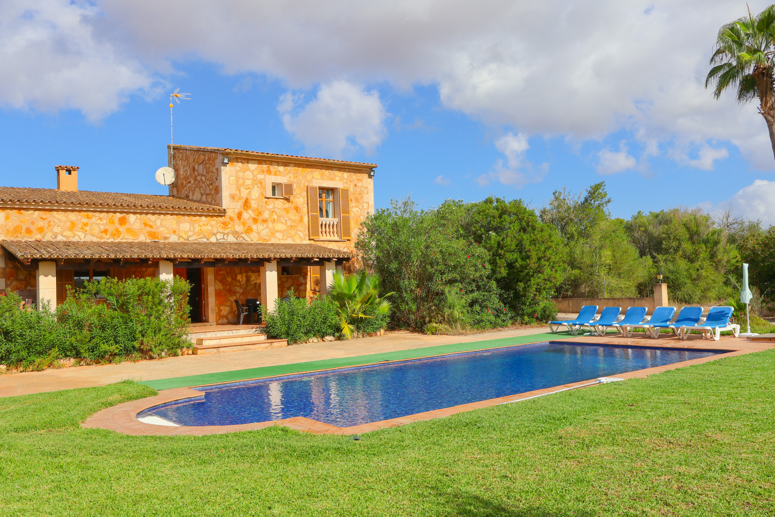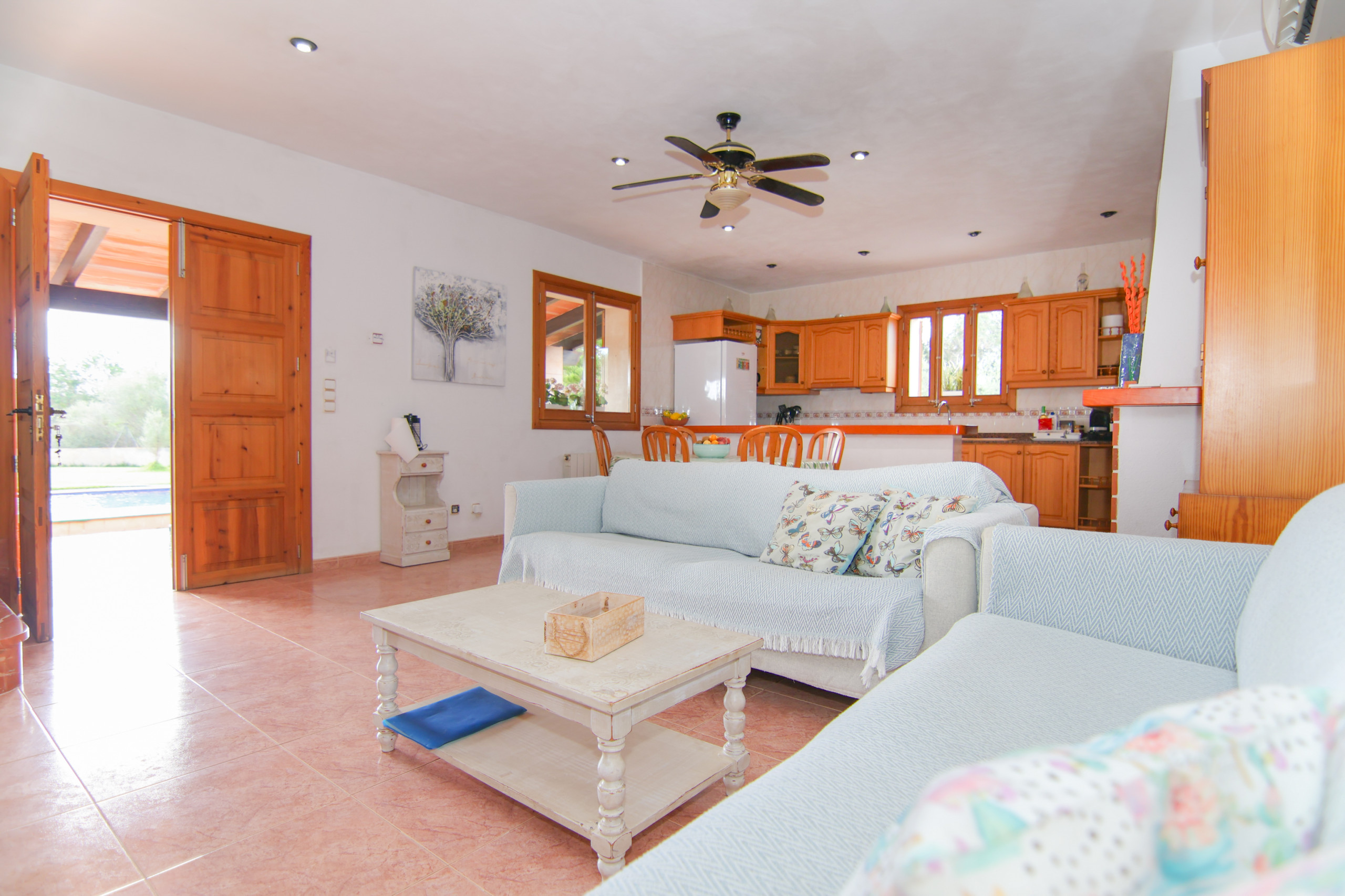 La maison est située au sud de Majorque, entre les localités de Campos et Santanyí, des villages de taille moyenne où vous trouverez tous les services dont vous pourriez avoir besoin : restaurants, supermarchés, pharmacies, banques, stations-service, etc. Es Trenc, Ses Covetes, Sa Ràpita et Sa Colònia de Sant Jordi, plages très connues à Majorque, sont à seulement 16 minutes en voiture.