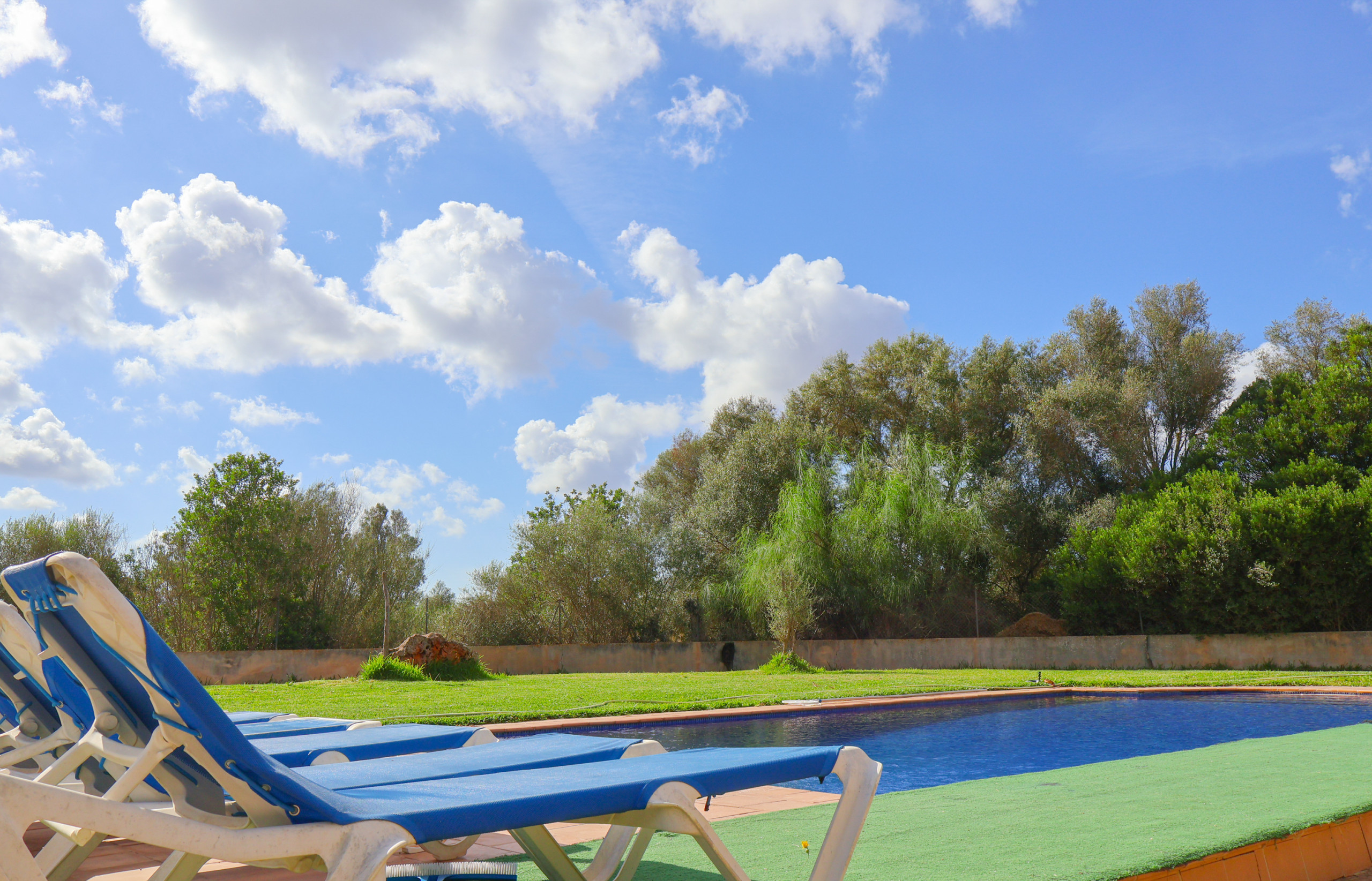 Dans la zone extérieure : vous trouverez la grande piscine de 10x5 m, avec ses transats et sa zone de détente, des porches, des chaises... Sur l'un des porches se trouve une autre table où vous pouvez profiter de n'importe quel repas en plein air. De là, vous pouvez surveiller toute la zone de piscine et les terrasses. Un grill en plein air pour des barbecues en famille ou entre amis.