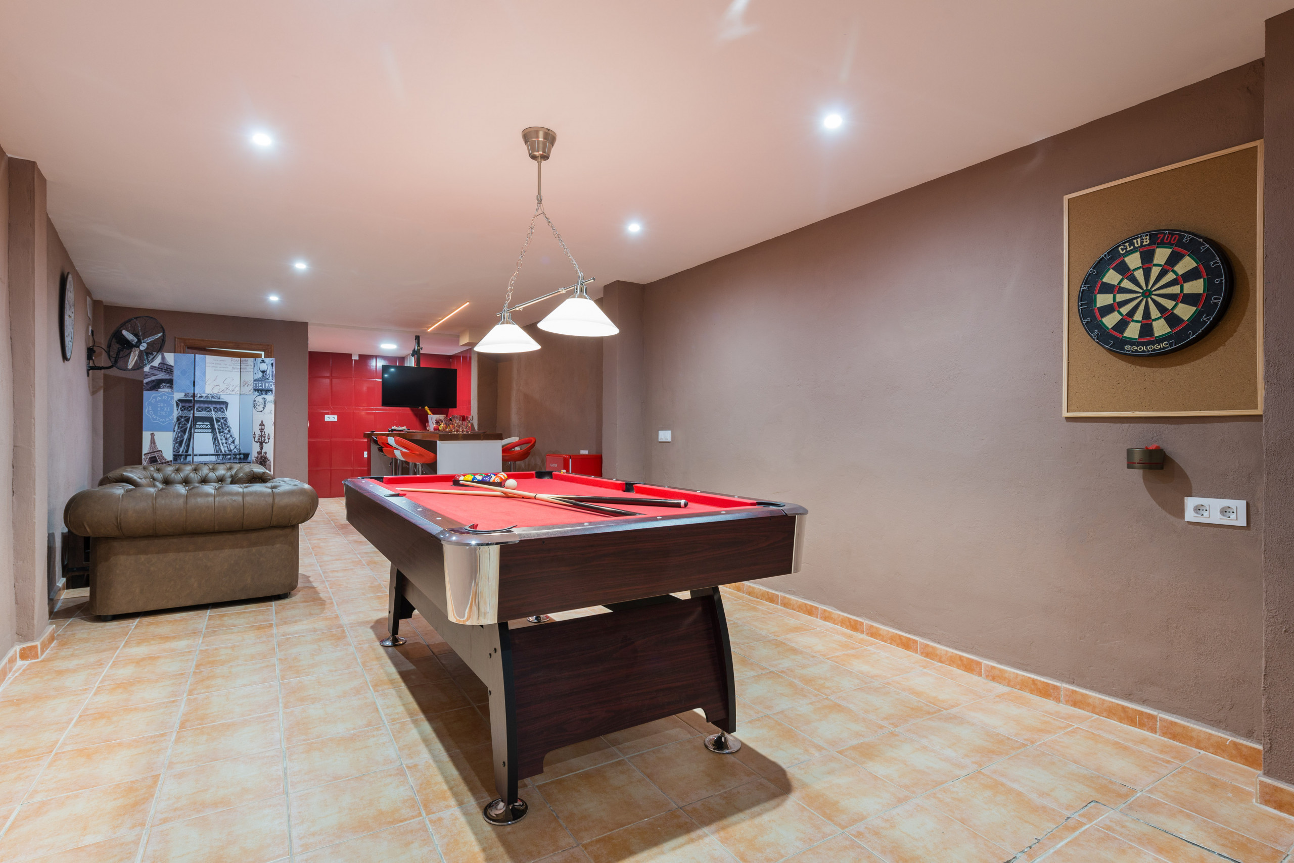 Cette charmante maison de village, située au cœur du centre médiéval d'Alcudia, dispose de trois chambres, trois salles de bains, d'un salon et d'une cuisine répartis sur plusieurs étages, et d'une terrasse sur le toit avec vue sur le village, mais ce qui rend vraiment cette maison spéciale, c'est la salle de jeux au rez-de-chaussée avec une table de billard, des fléchettes, un bar, une cuisine, des canapés et un espace pour ranger les vélos, parfait pour profiter en famille et entre amis !