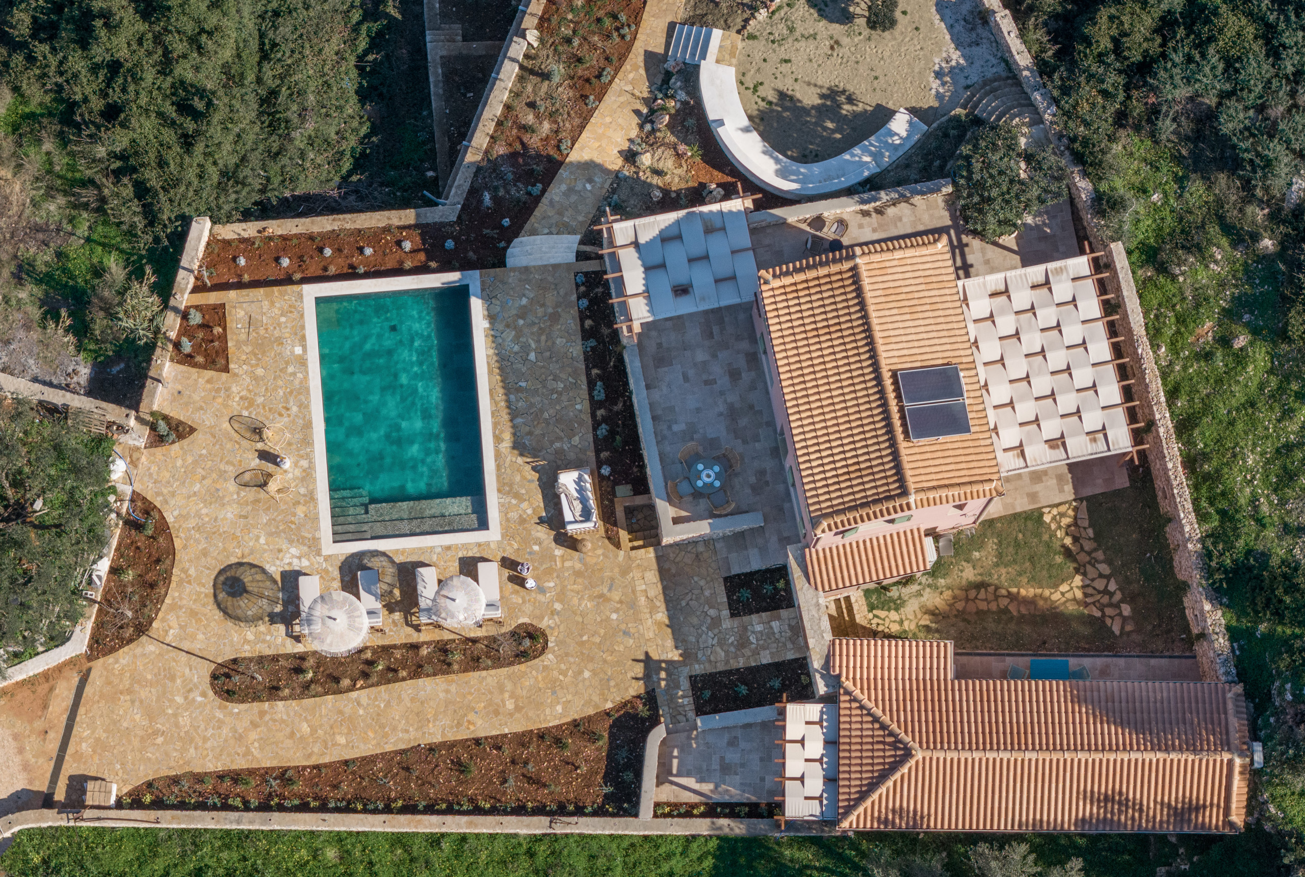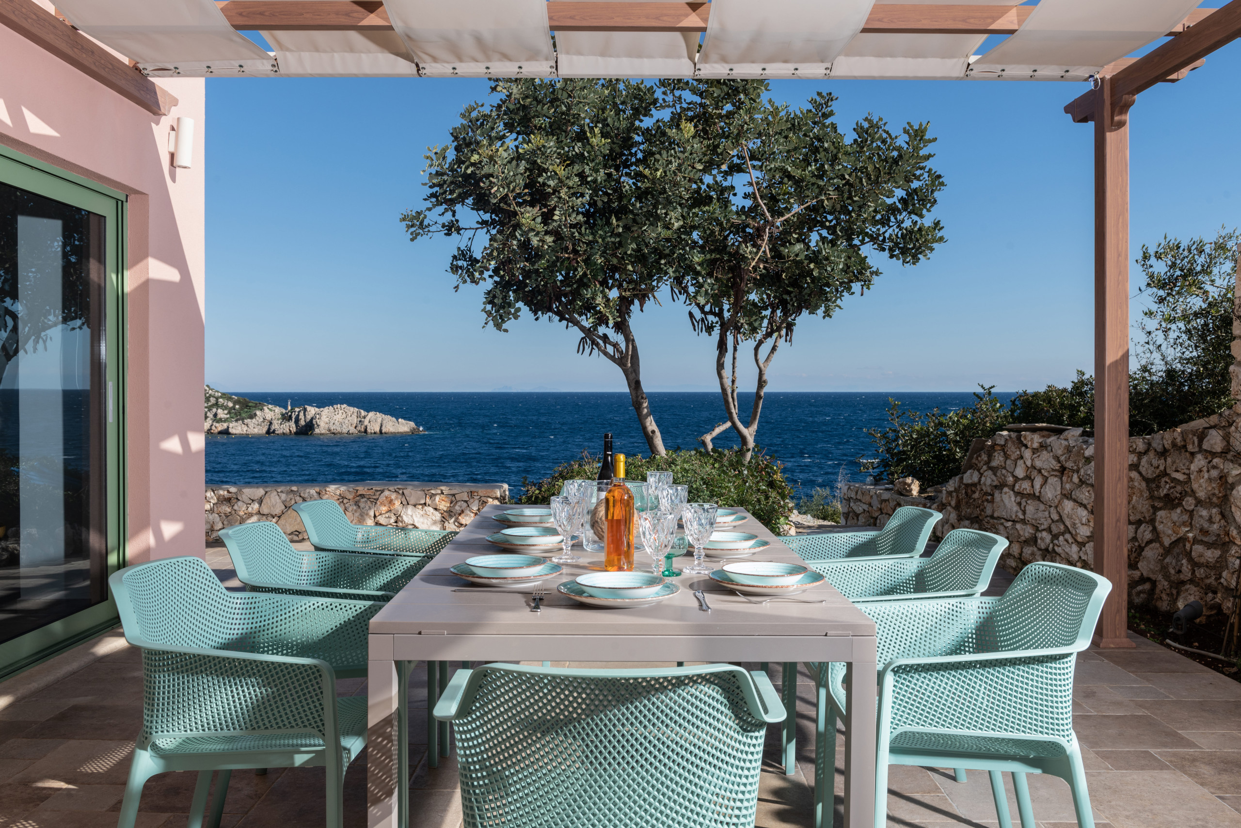 La villa dispose d’une piscine à débordement privée, de jardins méditerranéens et d’un charmant sentier en pierre menant directement à votre plage privée. De vastes terrasses couvertes, des espaces de repas en plein air et des vues imprenables sur Céphalonie créent un cadre idéal pour se détendre, bronzer ou savourer un dîner face à la mer.
