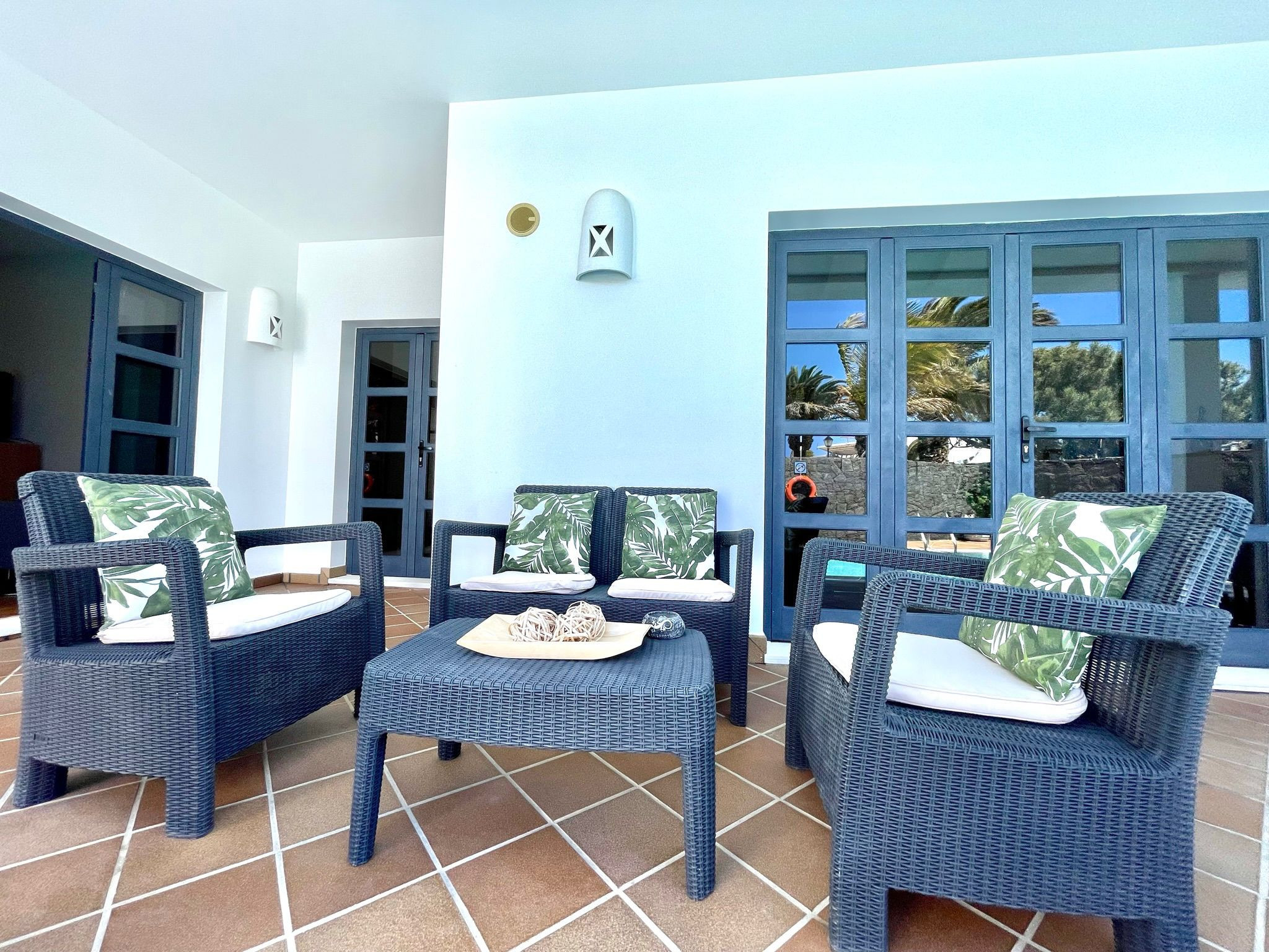 Sur la côte sud de Lanzarote, à quelques pas de la plage de Playa Blanca, Your Island Villa Mamma Mia surprend par son design moderne et novateur qui intègre de subtils détails rustiques. Cette propriété conçue pour accueillir jusqu'à 6 personnes comprend un salon ouvert avec mur en pierres apparentes, une salle à manger avec poutres en bois et vue sur la piscine, une cuisine bien équipée avec des électroménagers de haute qualité, 3 chambres, ainsi ainsi que 3 salles de bains. Les équipements supplémentaires comprennent une connexion Wi-Fi, la climatisation, la télévision par satellite et par câble, un berceau et une chaise haute. À l'extérieur, vous trouverez une fascinante terrasse avec chaises longues, un porche avec un coin salon et une grande table à manger, ainsi qu'une majestueuse piscine de 40 m², qui peut être chauffée. De plus, vous aurez à votre disposition un barbecue qui ravira vos repas en extérieur. Et comme si cela ne suffisait pas, tout ce plaisir sera agrémenté d'une vue incomparable sur les montagnes environnantes, et d'un accès illimité au sauna, au jacuzzi et à la douche extérieure dont dispose la propriété. Vous vous retrouverez dans un endroit central mais calme, à seulement 1,2 kilomètres, soit 15 minutes à pied, de nombreux supermarchés, restaurants et magasins. Vous trouverez la plage à seulement 900 mètres, soit 10 minutes à pied, véritable refuge pour échapper à toute trace de routine avec l'océan Atlantique en toile de fond.